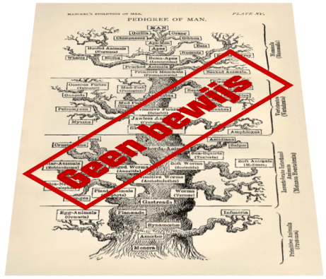 De evolutietheorie en het darwinisme blijken op zand te zijn gebouwd. Er is wel een zekere vorm van ‘evolutie’, maar slechts op soort-niveau. Dit noemen we micro-evolutie, of de mogelijkheid tot variatie of aanpassing (adaptatie) binnen een soort. Op die manier kunnen ondersoorten of rassen van één soort worden gevormd – en dus ook de zogenaamde soorten binnen een geslacht. Macro-evolutie echter, van ééncellige alg tot eik, of van bacterie naar mens, is iets denkbeeldig: het is een geloofsovertuiging. Genetisch, fysisch en wiskundig kan het niet, en er is ook geen enkel degelijk fossiel bewijsmateriaal. En het leven kan ook niet vanzelf ontstaan: ook dat is een geloof. Paleontologie en evolutiebiologie zijn geen exacte wetenschappen zoals de gewone biologie (waar men vaststellingen doet), maar historische wetenschappen, die aan de hand van wat gegevens en berekeningen een reconstructie trachten te maken van wat zich in het verleden heeft afgespeeld. Het is duidelijk dat de gegevens voor allerhande interpretaties vatbaar zijn. Men hanteert wetenschappelijke onderzoeksmethoden die verre van onfeilbaar zijn en men interpreteert objectieve gegevens steevast binnen het ‘evolutieparadigma’, dus niet objectief. Er wordt geknoeid met fossielen en de nomenclatuur in een poging om toch maar ‘bewijs’ te leveren voor evolutie (de ontelbare overgangsvormen die Darwin voorspelde). Maar we zien dat deze zogenaamde bewijzen slechts schijnbewijzen zijn en één voor één onderuit kunnen worden gehaald.