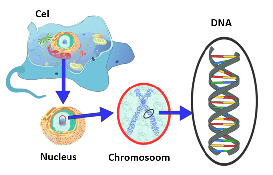 De basis van alle leven is DNA (desoxyribonucleïnezuur of in het Engels: deoxyribonucleic acid), het biochemisch macromolecuul[1] dat het grondplan – de erfelijke informatie – van het betreffende organisme bevat. DNA bestaat uit twee lange strengen van opeenvolgende nucleotiden, die met elkaar vervlochten zijn. De twee strengen (die elkaars ‘spiegelbeeld’ zijn) zijn met elkaar verbonden via basenparen, waarbij steeds twee tegenover elkaar liggende nucleobasen verbonden zijn door een waterstofbrug. DNA bevat vier soorten nucleotiden met de nucleobasen adenine, thymine, guanine en cytosine, die afgekort worden met de letters A, T, G en C. De twee strengen zijn complementair doordat de basen alleen in de paren AT en GC kunnen voorkomen. RNA, ribonucleïnezuur, bestaat uit een enkele streng. Zoals met letters woorden, zinnen en boeken gemaakt kunnen worden, zo worden ook de letters van het DNA (de nucleobasen dus) gebruikt om allerlei erfelijke informatie op te slaan in de juiste volgorde, de genetische sequentie. Drie nucleobasen in een welbepaalde volgorde coderen voor een bepaald aminozuur, dit is het codon. De volgorde van die codons vormt het gen. Een gen heeft tevens een start- en stopcodon.